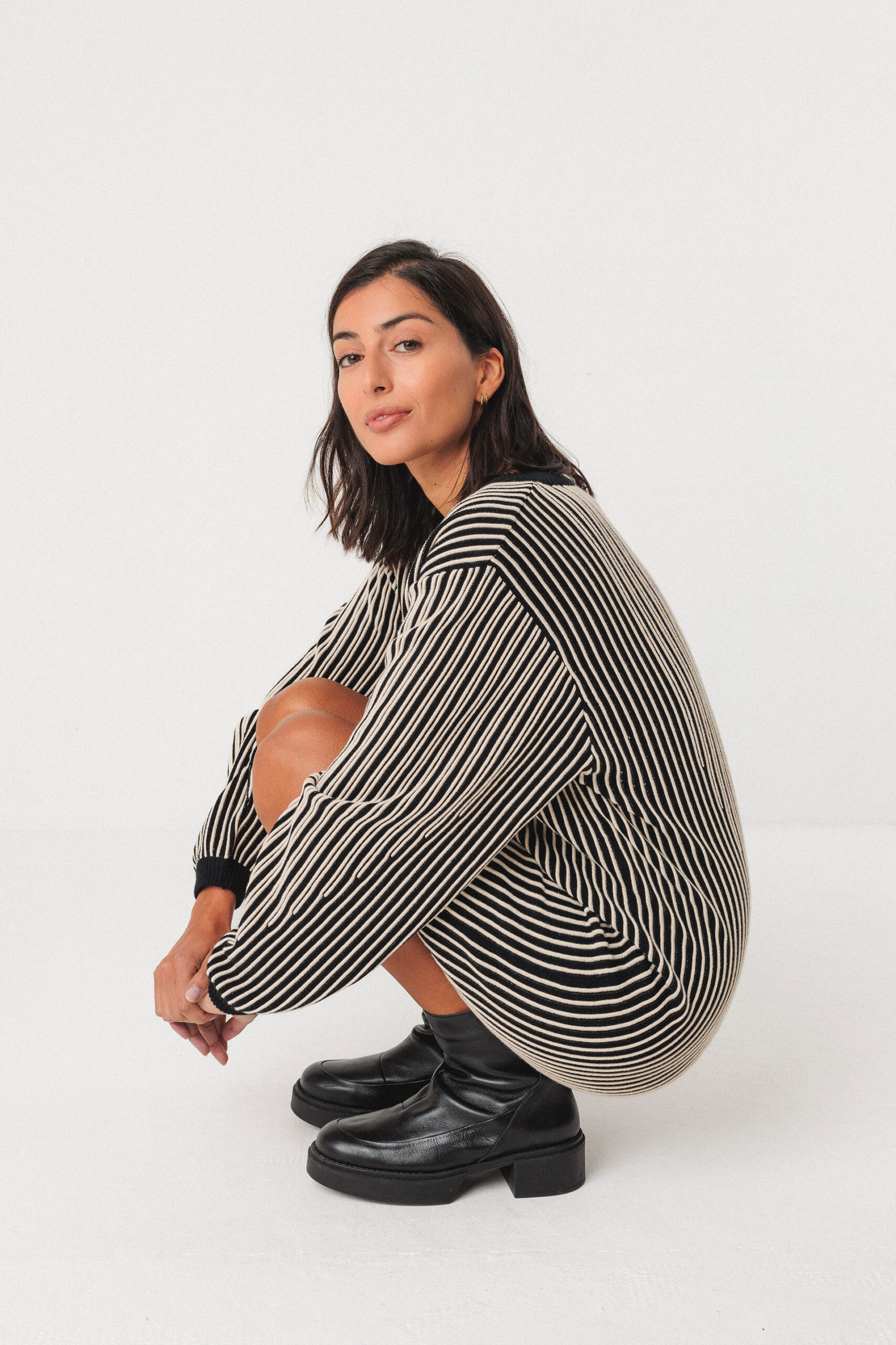 - Zweifarbiges Strickkleid mit Linienmuster